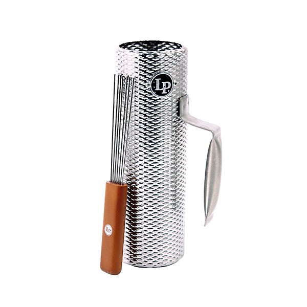 Following the success of the original, full-sized Merengue Guira, the Latin Percussion Mini Merengue Guira features an open-ended design and is made in the U.S.A. from durable stainless steel. An essential element in performing merengue music, this Guira features a metal handle for maximum comfort while playing and offers dimensions of 9.75 inches in length and 3 inches in diameter. The instrument also includes an LP333 Pro Scraper.