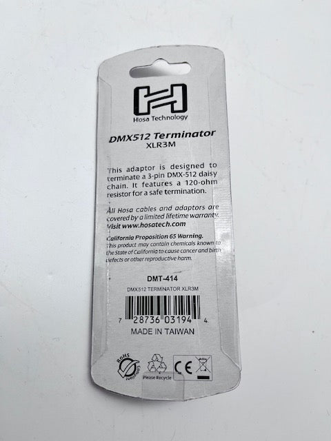 The DMX512 Terminator XLR3M is an essential accessory for DMX lighting systems, designed to prevent signal reflections and ensure stable data transmission. Featuring a male 3-pin XLR connector, this terminator is installed at the end of a DMX chain to maintain proper impedance and reduce interference. Its durable construction guarantees reliable performance in both live and studio environments, helping to maintain consistent lighting control and prevent glitches during shows or events.
