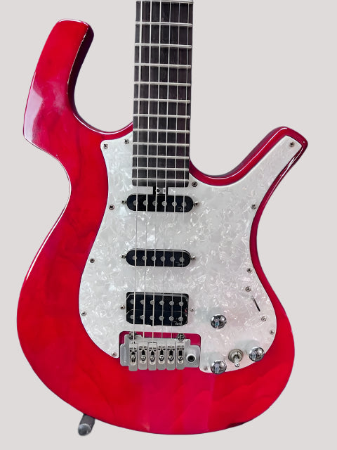 Expertly crafted with a bold, trans red finish, the Used Parker P-38 Cutaway guitar offers superior sound and playability. Its cutaway design allows for easy access to the higher frets, perfect for advanced players. Bring your performances to the next level with this high-quality instrument.