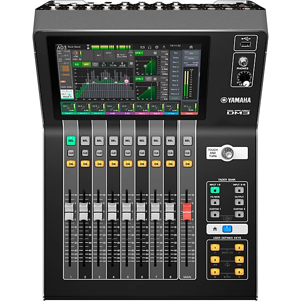 The DM3S is an ultracompact 22-channel digital mixer that is always ready for your next gig. When not on stage, the DM3S can be used as a DAW controller in the home studio. Built to make mixing easy the console encourages the engineer to focus on the music, utilizing a 9" touchscreen and a single Touch & Turn knob for managing most of the console's operations.